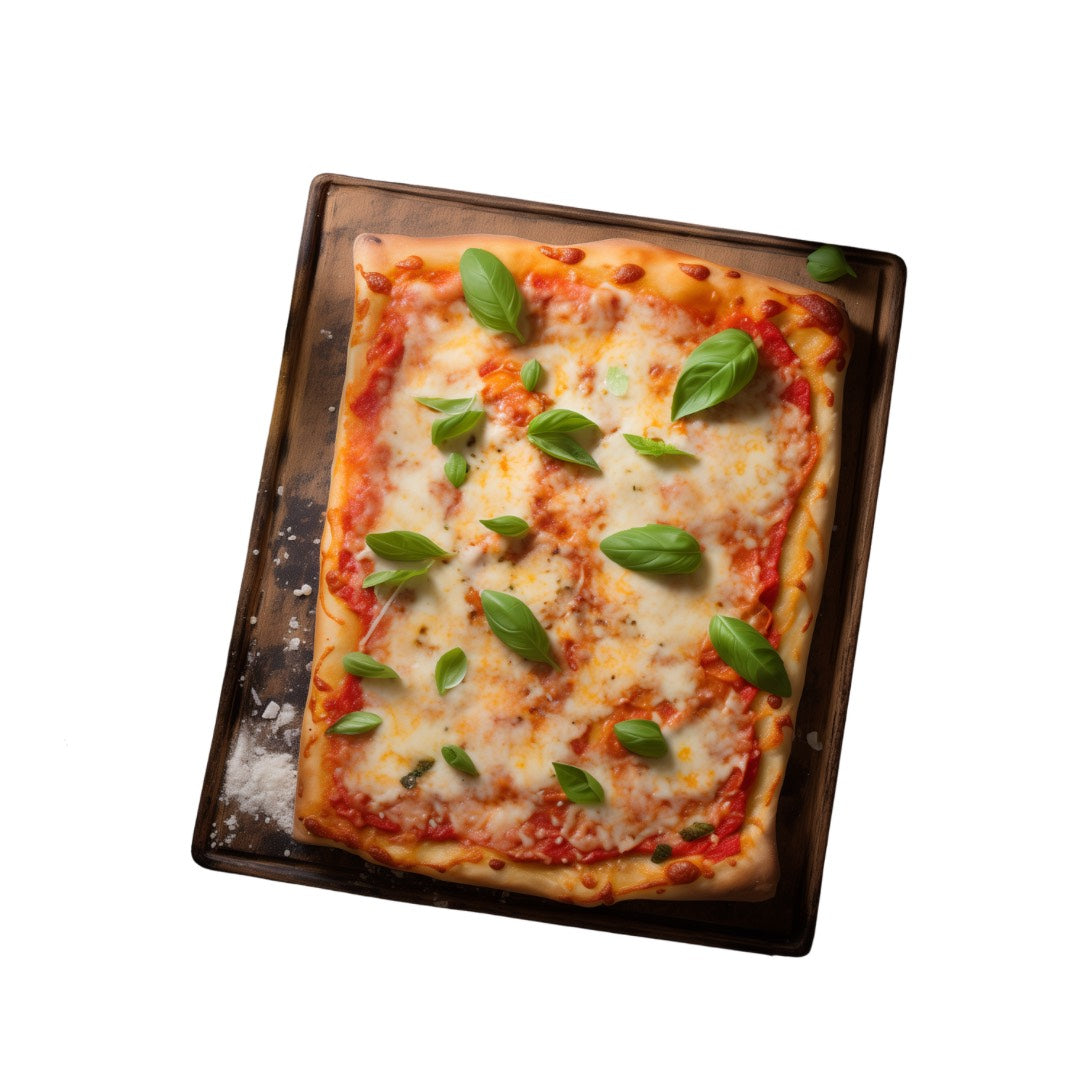 Класическа италианска пица с ароматен доматен сос, моцарела, риган и пресен босилек.
